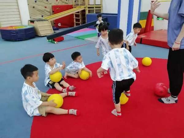 美吉姆老师们每天会带宝宝们体验一种球类运动